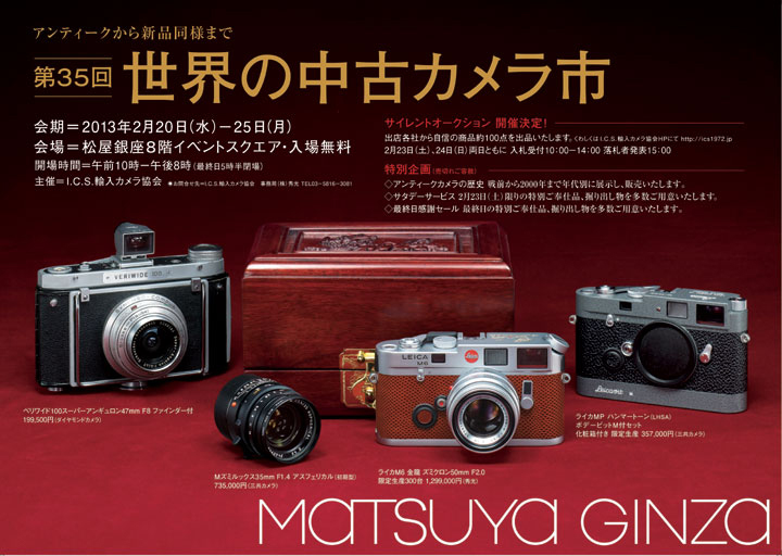 ![]() 第2回 世界の中古カメラ市 2月28日-3月5日 松屋銀座 |