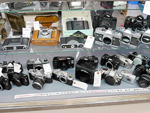 ライカ、ハッセルブラッド、ローライなどの舶来品からニコン、キヤノン、ペンタックス、ミノルタなどの国産品など。その他、数多あるメーカーのカメラ、レンズが並びます。
