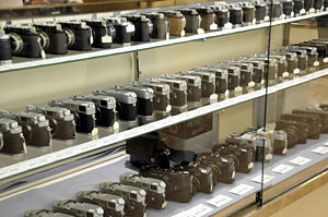 クラシックカメラ、レンズ、デジタルカメラ、中判、大判、三脚、ムービーカメラ、フード、アクセサリーなど種類はさまざま、その数は数千点にのぼります。